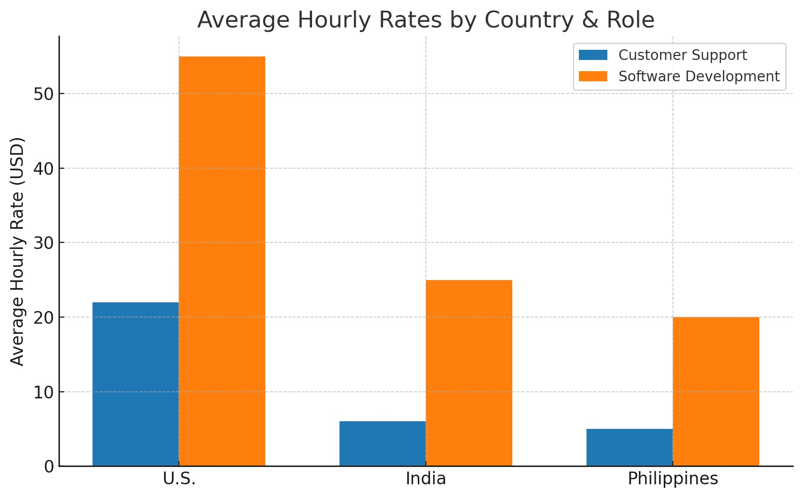 Lower labor costs: The average hourly rate for a U.S.-based customer support rep is $18–$25/hour. Source: https://www.indeed.com/career/customer-service-representative/salaries?utm_source=chatgpt.com
